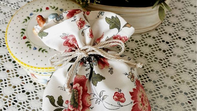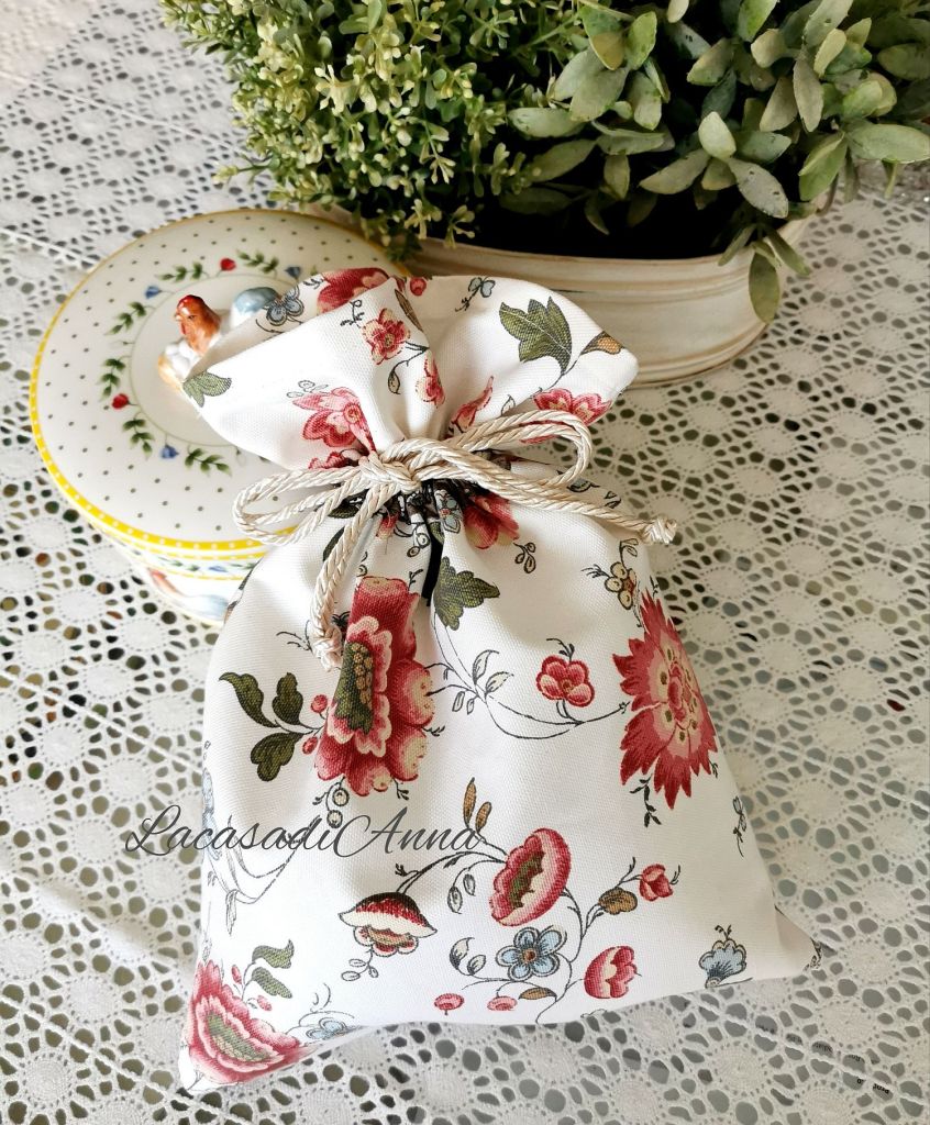 Questa stoffa in cotone pesante mi è sempre piaciuta e l’ho abbinata ad uno sbieco sempre con motivi floreali. Una cosa semplice e utile che sa di primavera e dato che arriva la Pasqua potrebbe essere anche un’idea carina per contenere uova e dolci fatti in casa.