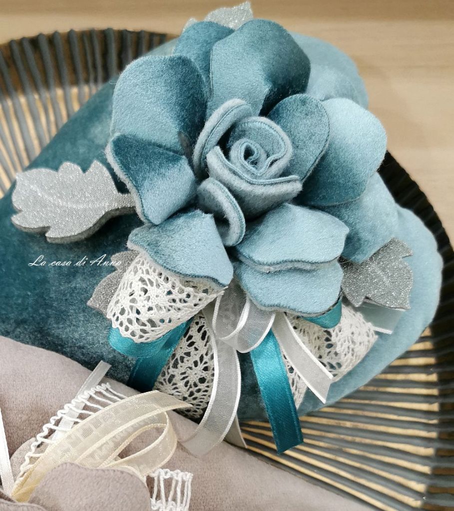Morbido e invernale con rose cucite con grande passione, poteva essere diversamente? Evviva gli innamorati, evviva l’Amore!