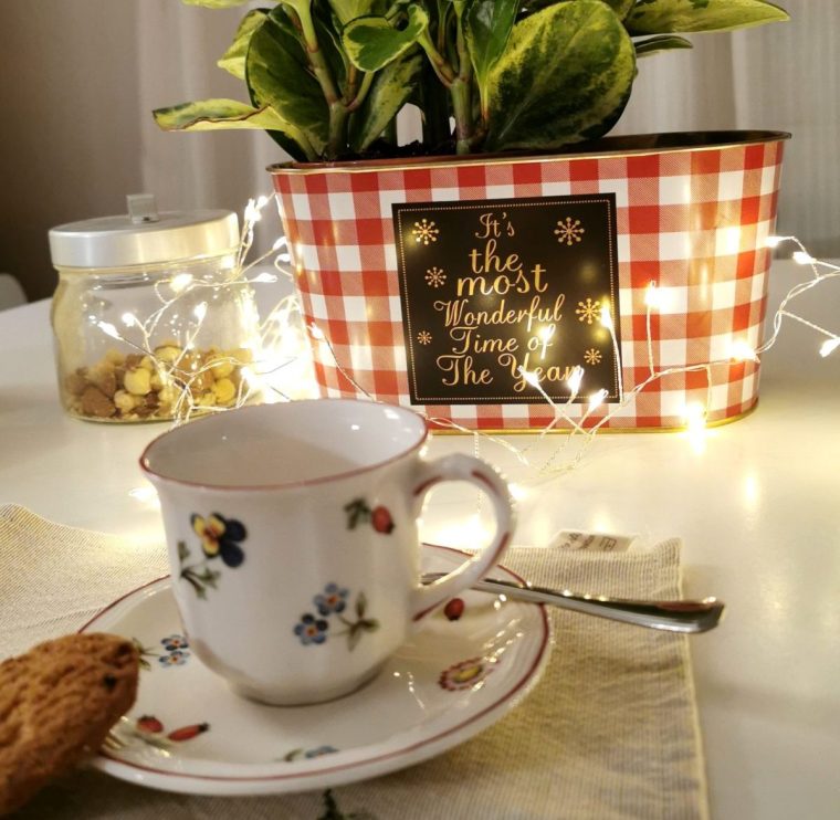 Oggi sistemavo carte in giro e mi capita un foglio di blocco notes con un piccolo scritto sul Natale. Sono abituata a farci sempre caso a quei fogli strappati, pezzi di carta che mi ritrovo magari nei cassetti, perché sopra c’è scritto qualcosa in cui credo o importante. Un’abitudine che ho fin da ragazza, quella di scrivere ovunque, che non è proprio un sistema ordinato ma ho imparato a riconoscere quei fogli nel tempo. La scrivo di seguito come l’ho pensata sicuramente era una pausa caffè considerando che parlo anche di lucine e che io le ho sempre nel periodo di Natale a tavola.